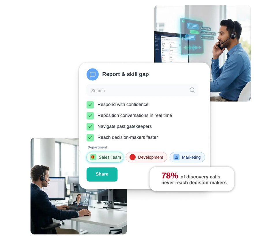 Train your team with real-world scenarios to handle tough customers, gatekeepers, and decision-makers, improving sales outcomes.
