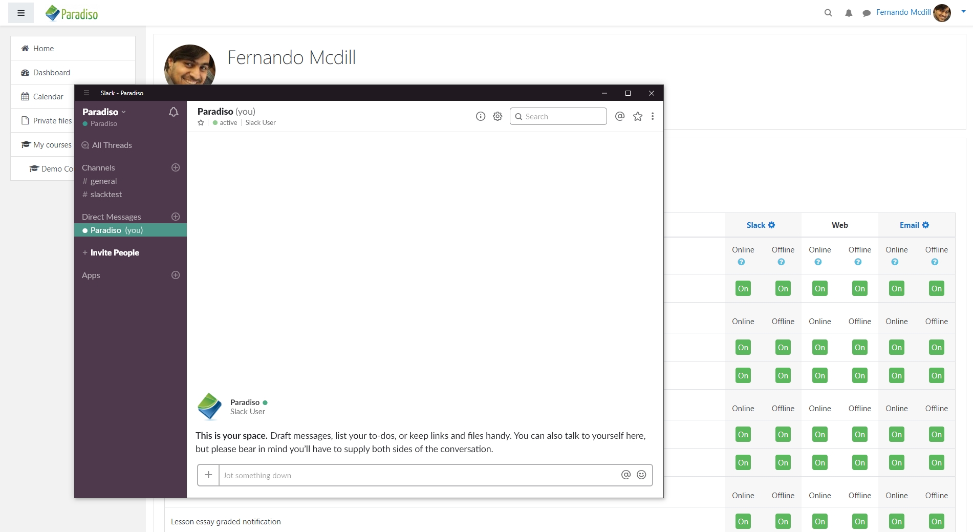 Another great solution that comes with the Moodle Slack integration is the connection between the student and the instructor. This has been presented as an issue in e-Learning since availability and real-time support from the instructor’s side was commonly heard complaints in users.