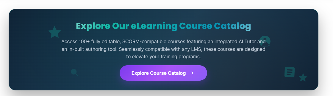 Create and customize engaging eLearning content using our advanced AI-powered authoring tool. Craft professional courses quickly and easily, providing interactive, effective learning experiences.