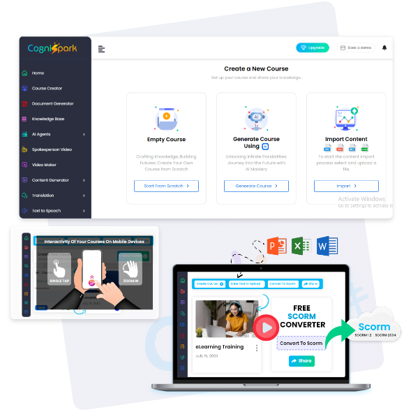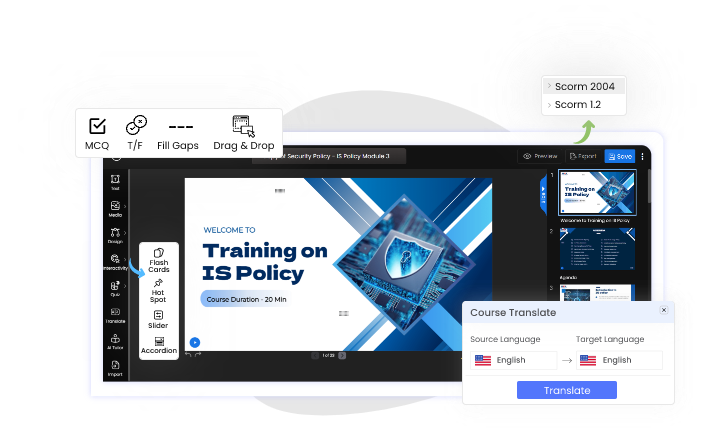Create and customize engaging eLearning content using our advanced AI-powered authoring tool. Craft professional courses quickly and easily, providing interactive, effective learning experiences.