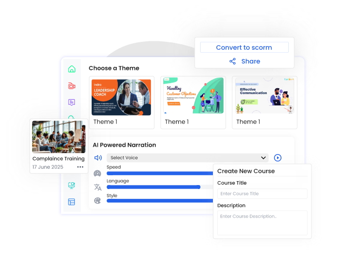 Not at all. The platform is designed for ease of use. Whether you’re a training manager, instructional designer, or HR professional, the intuitive interface of our AI powered authoring tool makes course creation simple and user-friendly.